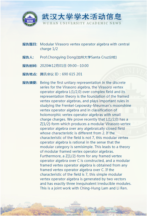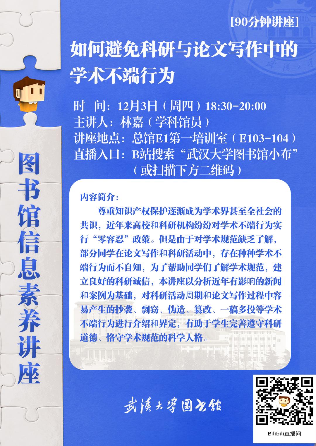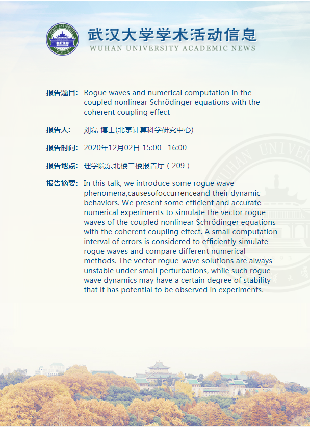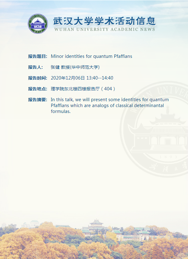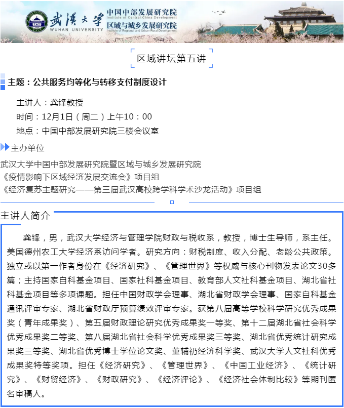 【今日珞珈】11月30日-12月6日学术讲座和文化活动信息